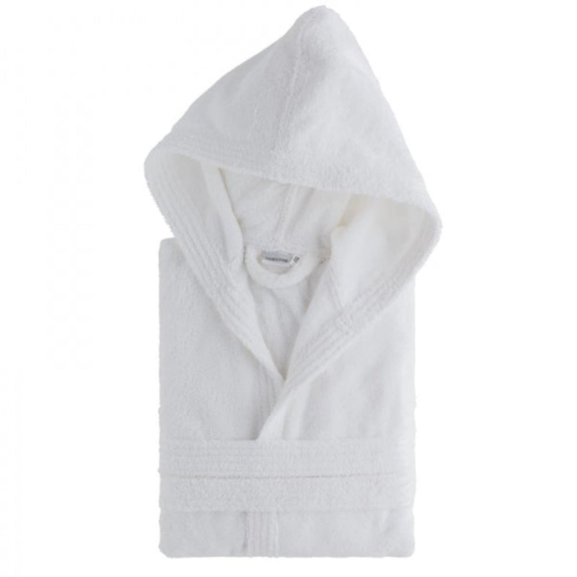 Accappatoio in 100% cotone realizzato con la tipica lavorazione senza disegno utilizzata principalmente da alberghi e strutture ricettive di lusso, hotel, b&b.